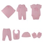7 Pieces ( Blanket , Sleepsuit , Short Sleeve Bodysuit , Pants , Bib , Gloves & hat )